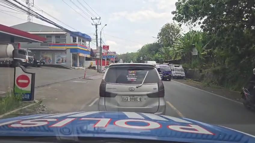 Perhatian petugas tertarik pada sebuah kendaraan yang baru saja keluar dari Exit Tol Parung Kuda. Setelah didekati, terungkap fakta bahwa plat kendaraan tersebut sengaja dipasang secara terbalik.
