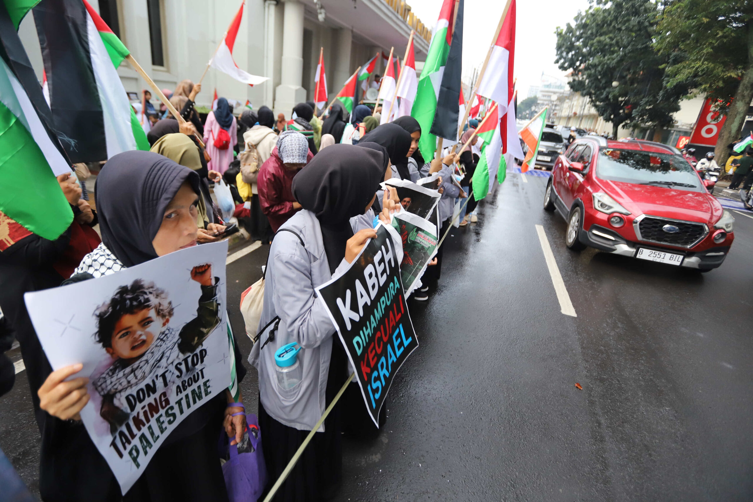 Aksi berlangsung tertib dan khidmat, dengan peserta membawa bendera Merah Putih, Palestina, dan Iran. Dalam kegiatan tersebut, massa menyuarakan solidaritas terhadap rakyat Palestina sekaligus mendesak Pemerintah Indonesia untuk mengambil sikap yang lebih tegas terhadap berbagai isu global yang dinilai mencederai nilai kemanusiaan.