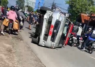 “Ada empat orang penumpang. Katanya ambulance ini terguling karena mengindari sepeda motor yang dikendari ibu-ibu,” kata seorang saksi mata di lokasi kecelakaan.