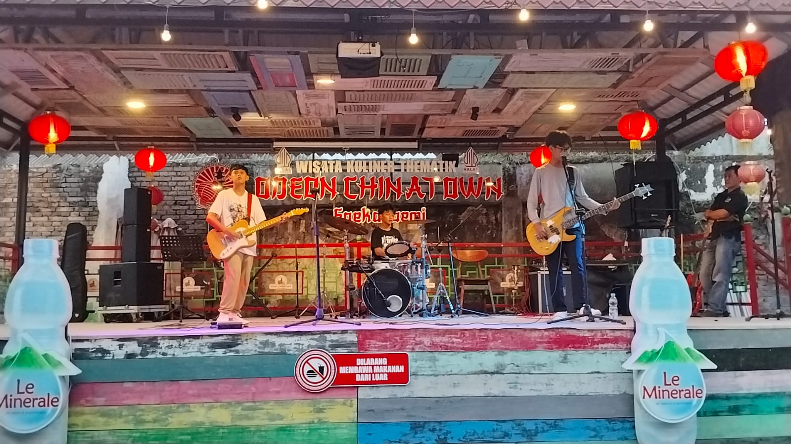 SUKABUMI – Suasana Festival Odeon Culinary Chinatown Fest Vol. 01 “Chinatown Feat UMKM Naik Kelas” mendadak pecah saat band pelajar asal Kota Sukabumi, Jetplane, naik ke atas panggung. Dengan semangat meledak-ledak, mereka membawakan lagu legendaris “Killing In The Name” dari Rage Against the Machine (RATM) — dan langsung menghipnotis para penonton.