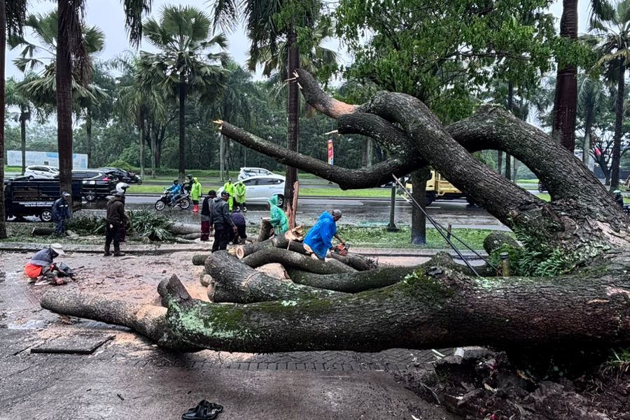 “Hari ini ada dua kejadian pohon tumbang di Kota Baru Parahyangan. Pertama di depan Bank BCA, kedua di depan RSCK,” ujar Amas.