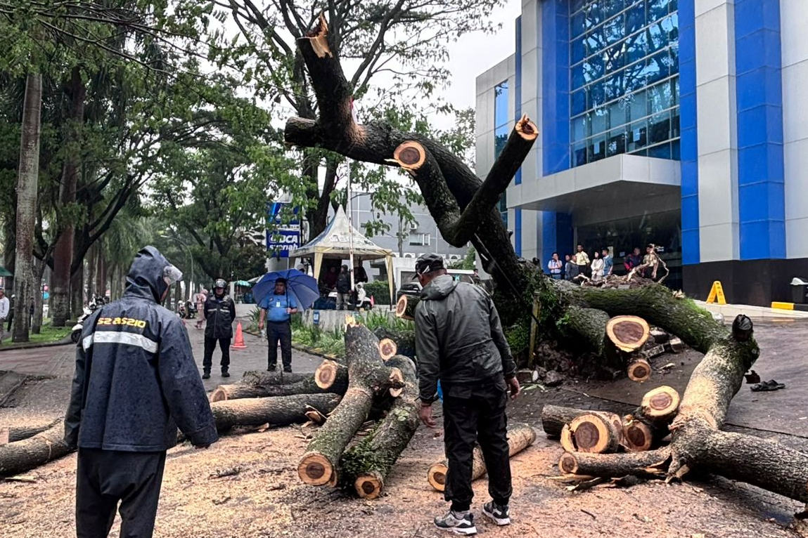 Tak hanya satu, peristiwa serupa juga terjadi lebih awal di kawasan yang sama. Sekitar pukul 14.00 WIB, pohon tumbang dilaporkan terjadi di depan Bank BCA Kota Baru Parahyangan.