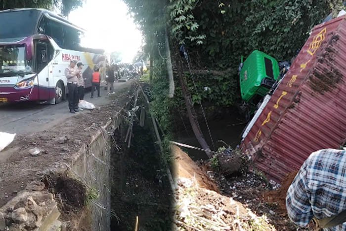 SUKABUMI – Sebuah truk kontainer terjun dari Jembatan Tugu Macan di Jalan Raya Sukalarang, Kecamatan Sukalarang, Kabupaten Sukabumi, Rabu dini hari (26/11/2025). Kecelakaan yang terjadi sekitar pukul 03.00 WIB ini mengakibatkan kendaraan ringsek di sungai dan kerusakan pada jembatan.