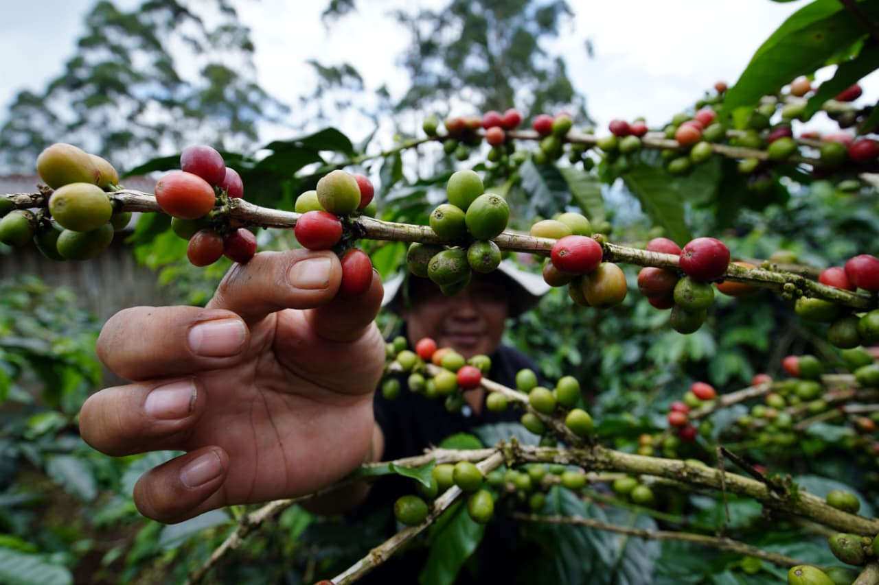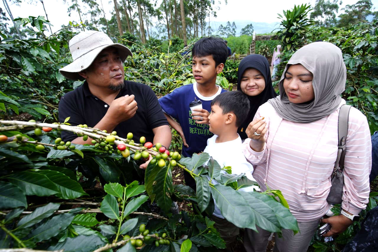 Pemilik UMKM Bareto Coffee Rudi Sugiman memetik biji kopi cherry di kebun Bareto Coffee, Pangalengan, Kabupaten Bandung, Jawa Barat, Sabtu (7/2/2026).