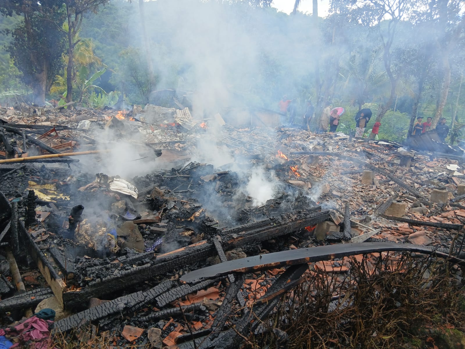 Akibat kejadian itu, sedikitnya tiga unit rumah terdampak kebakaran. Dua rumah dilaporkan hangus terbakar beserta seluruh isinya, sementara satu rumah lainnya mengalami kerusakan ringan.