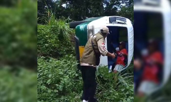 “Diduga kendaraan mengalami gangguan pada sistem pengereman saat melintas di Tanjakan Baeud, sehingga menabrak pembatas jalan dan akhirnya terguling ke kiri,” kata Panji dalam keterangannya.