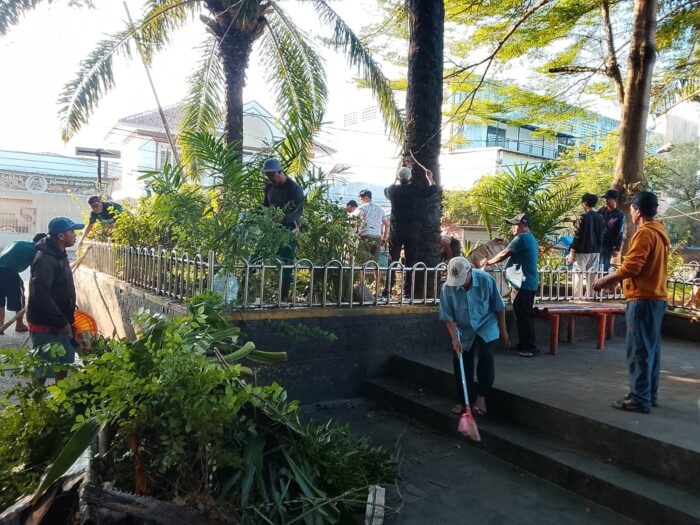 Selain pembersihan sampah, penataan lingkungan juga dilakukan dengan pemangkasan ranting pohon oleh tim dari Dinas Perumahan dan Kawasan Permukiman (Disperkim). Langkah ini dilakukan untuk menjaga keamanan sekaligus kerapihan kawasan alun-alun.