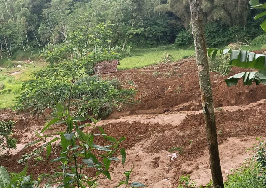 Video dan foto kejadian sempat beredar luas di media sosial. Dalam unggahan tersebut, terlihat kondisi lereng yang amblas dengan material tanah menutupi sebagian lahan pertanian warga.