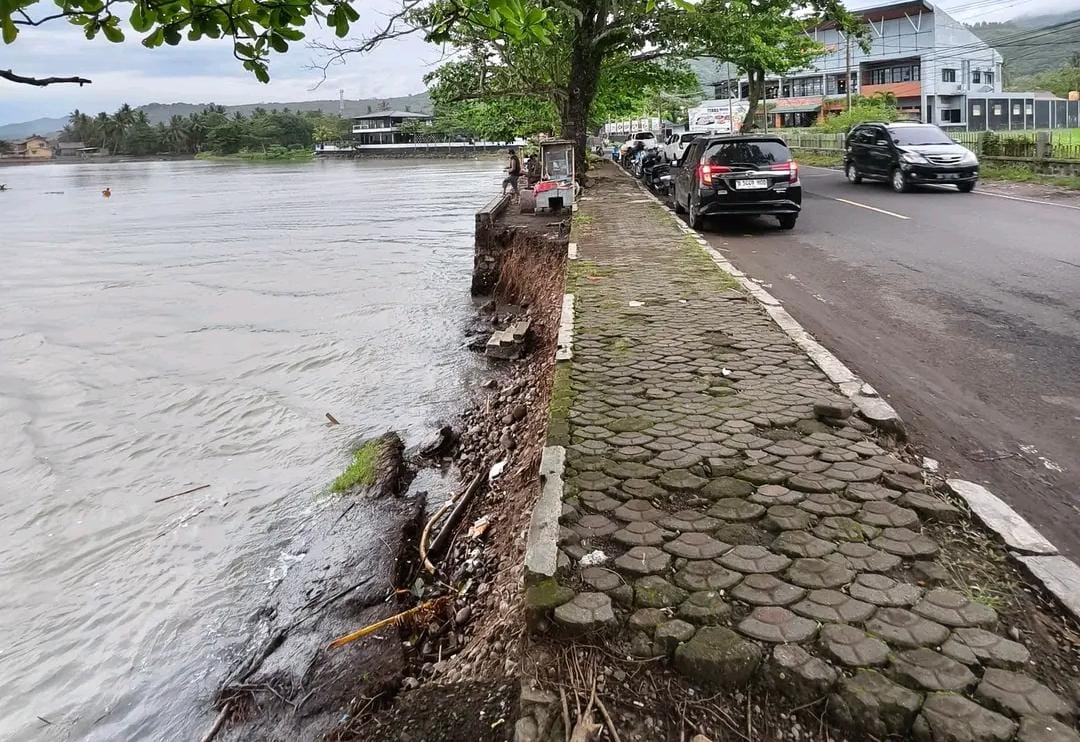 SUKABUMI Abrasi akibat banjir rob kembali mengancam kawasan Muara Pantai Citepus, Palabuhanratu. Tembok pembatas jalan nasional di lokasi tersebut mengalami pengikisan signifikan pasca-banjir rob yang terjadi sejak Selasa (4/11/2025) malam.
