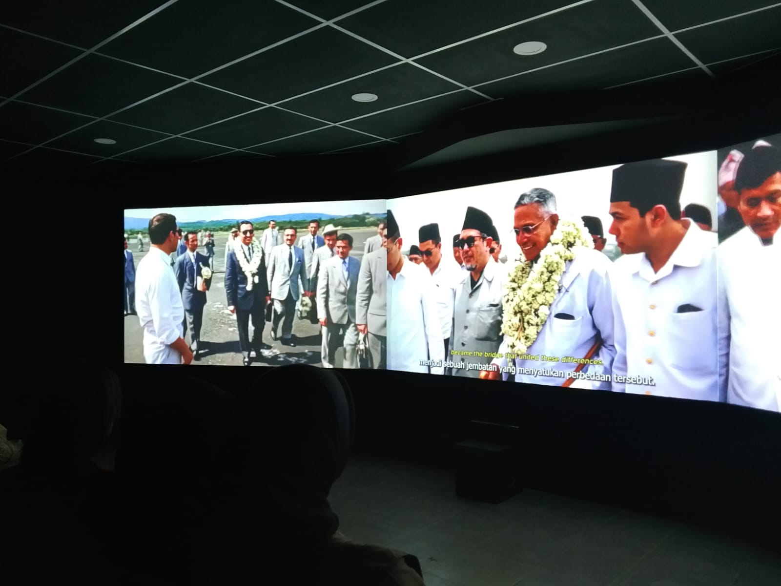 Dalam episode perdananya, pengunjung diajak “masuk” ke suasana sidang KAA 1955 di Gedung Merdeka. Melalui layar teater trapezoidal, tokoh-tokoh seperti Soekarno, Jawaharlal Nehru, dan Gamal Abdel Nasser dihadirkan secara digital dengan bantuan AI.