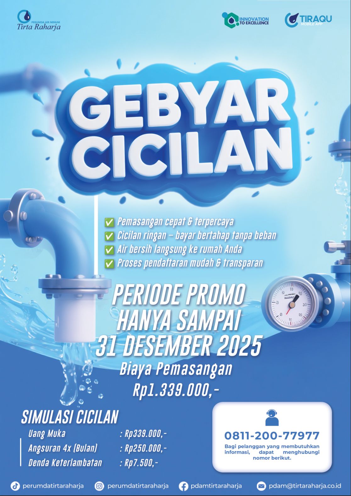 Sekretaris Perusahaan Tirta Raharja, Toni S. Rezanaser, mengatakan program ini memberikan kemudahan bagi masyarakat untuk memasang sambungan rumah baru dengan angsuran ringan hanya Rp250.000 per bulan.