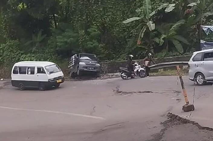 Seorang warga di lokasi kejadian, Iwan Hermawan, menyebut kerusakan jalan di tanjakan tersebut sudah terjadi sejak lama.