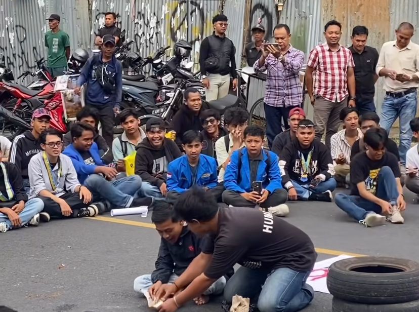 Tidak hanya berorasi, mahasiswa PMII juga melakukan aksi teatrikal dengan memakan nasi bungkus yang disebut sudah basi, lalu berpura-pura pingsan. Adegan itu digelar sebagai simbolisasi bahwa makanan tidak layak konsumsi berbahaya bagi kesehatan.