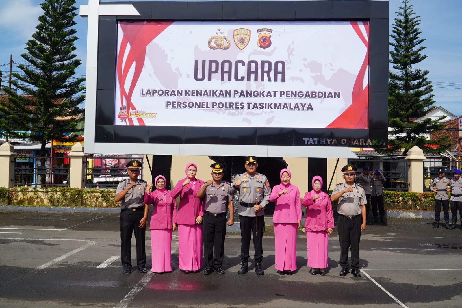 Acara tersebut turut dihadiri oleh seluruh jajaran Polres Tasikmalaya, termasuk Ketua Bhayangkari Cabang Tasikmalaya Ny. Vina Haris Dinzah, para Pejabat Utama (PJU), Kapolsek jajaran, perwira, dan bintara. Kehadiran Bhayangkari menambah suasana haru dan kekeluargaan, mencerminkan dukungan keluarga terhadap pengabdian para anggota Polri.