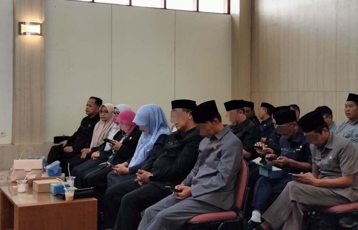 SUKABUMI – Sejumlah pejabat yang hadir dalam rapat paripurna di Gedung Dewan Perwakilan Rakyat Daerah atau DPRD Kabupaten Sukabumi nampak tak serius mengikuti acara. Beberapa diantaranya terlihat sibuk bermain handphone atau HP hingga ada yang tertidur.