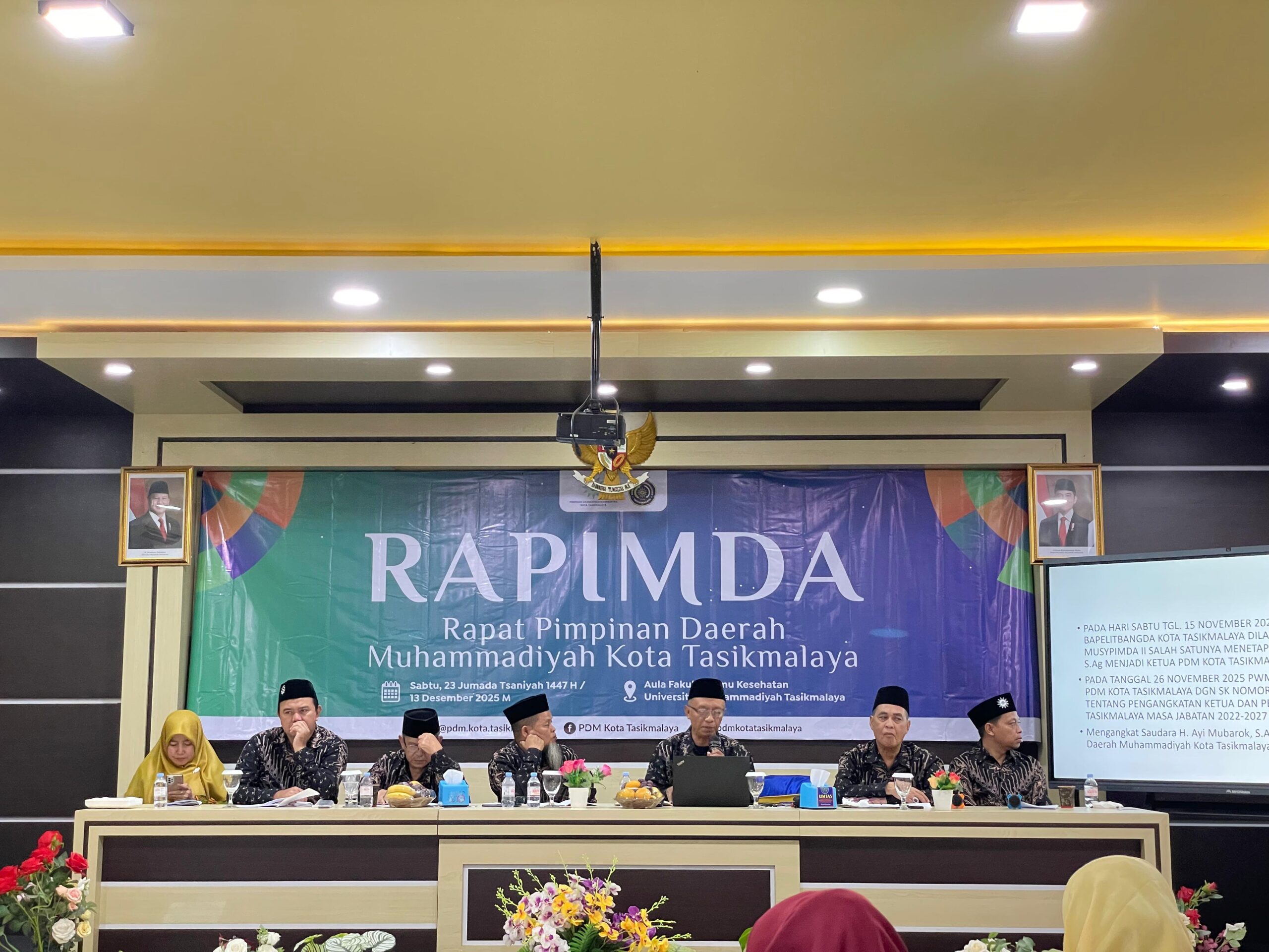 TASIKMALAYA – Pimpinan Daerah Muhammadiyah (PDM) Kota Tasikmalaya menggelar Rapat Pimpinan Daerah (RAPIMDA) sebagai tindak lanjut dari hasil Musyawarah Pimpinan Daerah (MUSYPIMDA). Kegiatan ini menjadi forum strategis untuk merumuskan arah kebijakan organisasi serta menyusun agenda program Muhammadiyah Kota Tasikmalaya untuk periode 2025–2026.