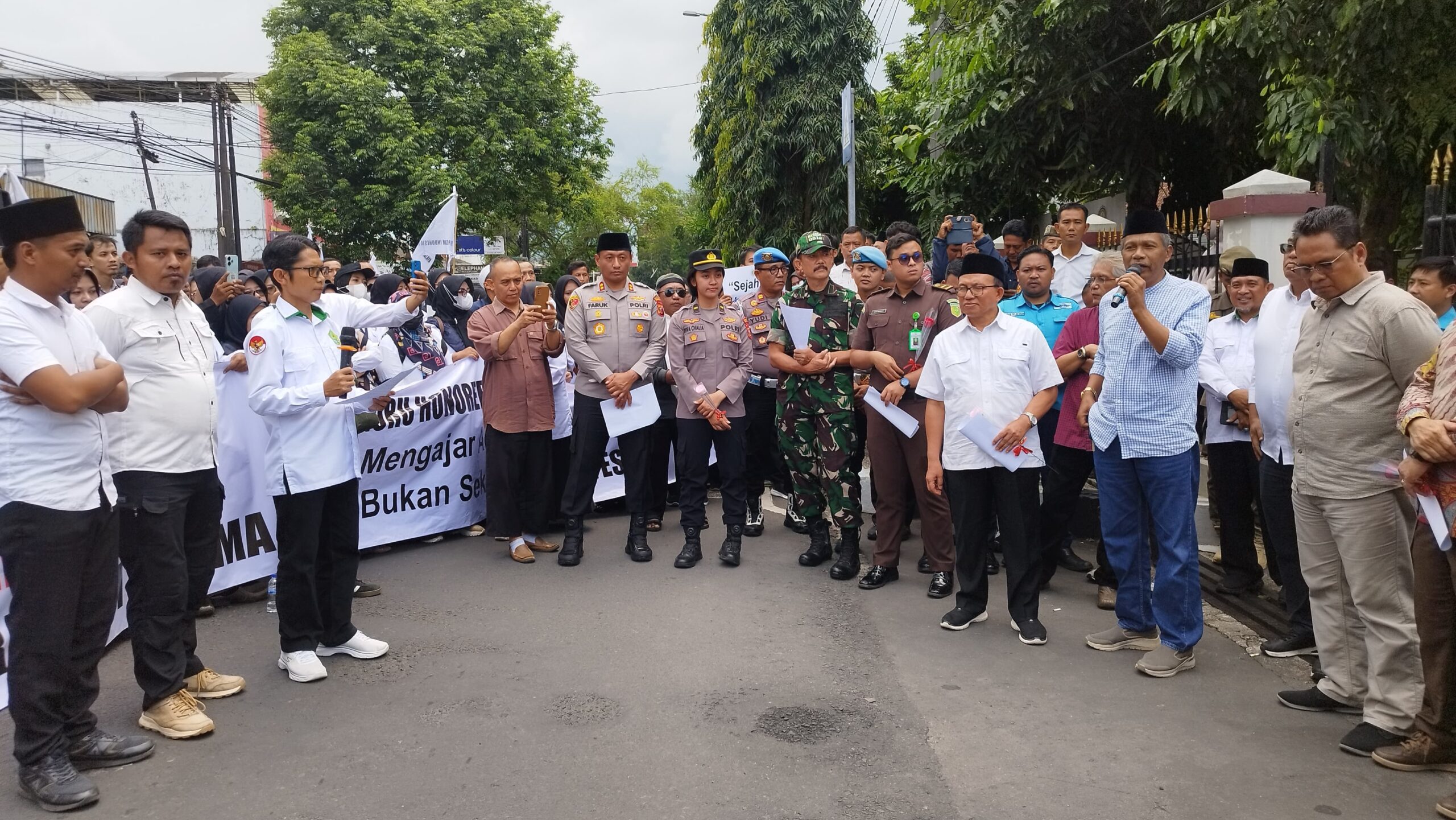“Di Kota Tasikmalaya ada ribuan guru honorer yang tidak tersentuh kebijakan PPPK maupun sertifikasi. Saat ini ada sekitar 3.200 guru tergabung di PGMI, tetapi hanya 200 berstatus PNS. Sisanya masih honorer, bergaji rendah, dan tanpa kepastian regulasi,” kata Asep Rizal di lokasi aksi.