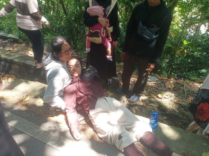 Beruntung, seorang warga bernama YI (43) yang melintas bersama suaminya segera memberikan pertolongan. Korban kemudian dievakuasi ke fasilitas kesehatan terdekat untuk mendapatkan penanganan.