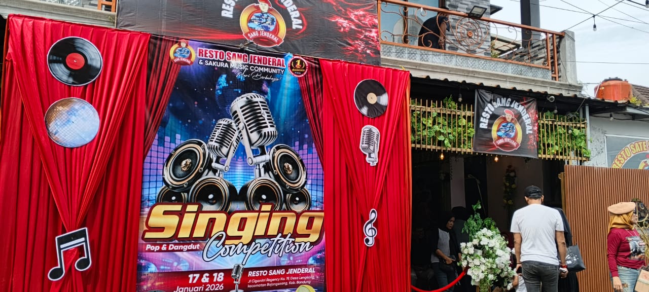 BANDUNG–Resto Sang Jendral kembali menghadirkan hiburan berkualitas dengan menggelar Song Competition yang diikuti oleh 90 peserta, pada Sabtu–Minggu, 17–18 Januari 2026. Ajang tarik suara ini berlangsung meriah dan sukses menarik perhatian para pecinta musik serta pengunjung resto.