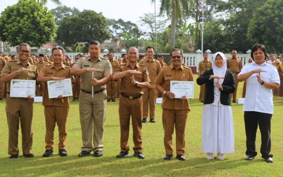 TASIKMALAYA – Sekretaris Daerah (Sekda) Kota Tasikmalaya memimpin apel pagi yang dirangkaikan dengan pemberian penghargaan kearsipan kepada sejumlah perangkat daerah serta pelepasan simbolis siswi SMP Persis Gandok yang akan mengikuti kegiatan International Model United Nations (IMUN) di Malaysia.