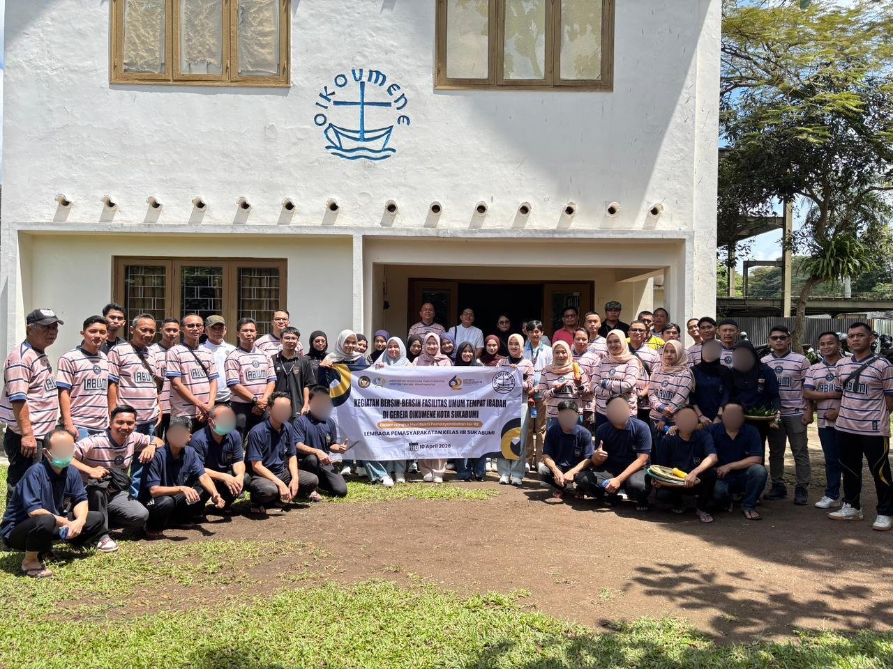 SUKABUMI — Semangat kepedulian dan toleransi antarumat beragama ditunjukkan Lembaga Pemasyarakatan (Lapas) Kelas IIB Sukabumi melalui kegiatan bakti sosial di Gereja Wisma Oikumene, Jumat (10/4/2026).