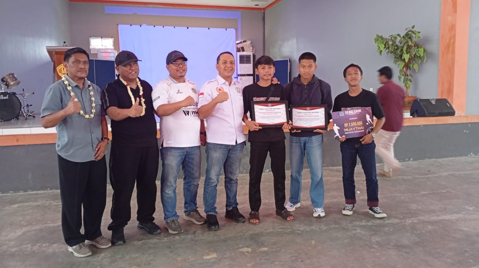 Para atlet menerima uang pembinaan dan sertifikat penghargaan sebagai bentuk apresiasi atas dedikasi dan kerja keras mereka di dunia olahraga.