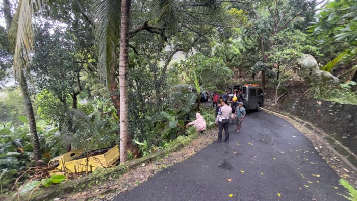 “Diduga sopir mengantuk saat melintas di jalan lurus menanjak dan menikung ke kanan, sehingga kehilangan kendali, dan menabrak pagar villa Dwi kemudian terjun ke jurang di sisi kiri jalan,” jelas Ipda Wangsit.