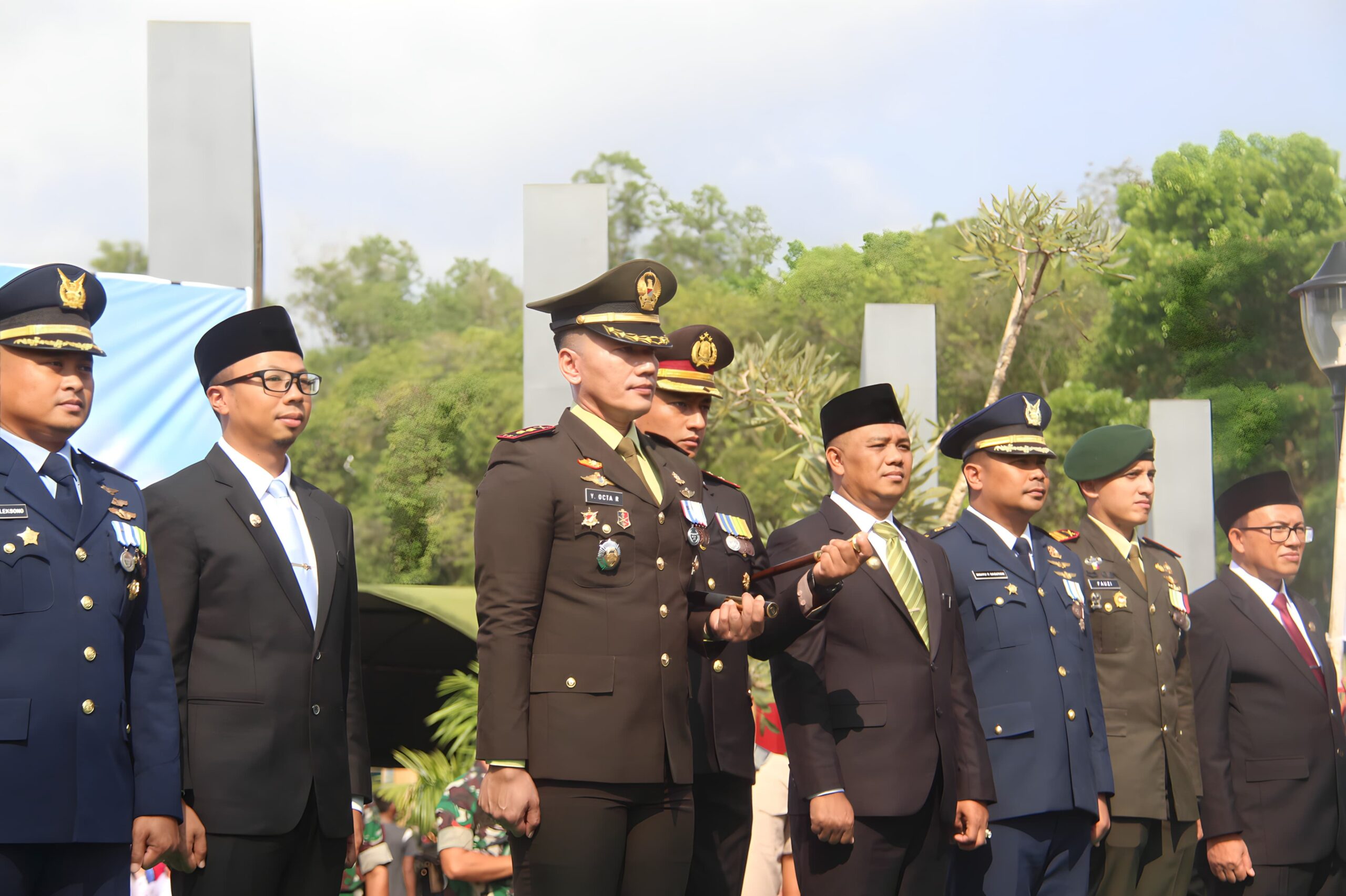 Sekitar enam ratus peserta hadir dari berbagai unsur, mulai dari TNI, Polri, ASN, pelajar, hingga organisasi masyarakat. Suasana upacara berlangsung tertib dan penuh semangat kebangsaan.