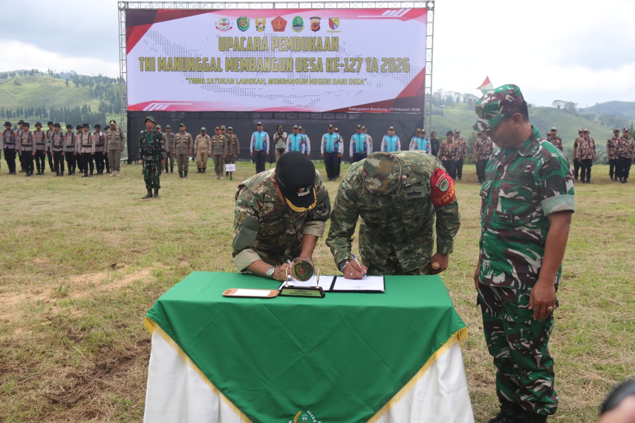 Kabupaten Bandung – Upacara Pembukaan TNI Manunggal Membangun Desa (TMMD) Reguler Ke-127 Tahun Anggaran 2026 resmi dilaksanakan di Lapangan Sepakbola Putra Padjajaran, Gunung Leutik, Desa Cipelah, Kecamatan Rancabali, Kabupaten Bandung, Selasa (10/2/2026).