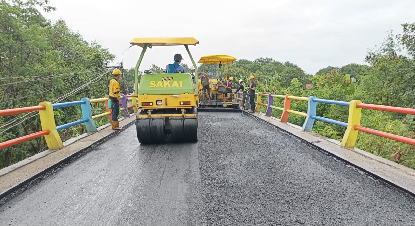 MAJALENGKA – Pemerintah Kabupaten Majalengka merampungkan pengerjaan pengaspalan ulang di kawasan Jembatan Pelangi Cimanuk pada ruas jalan Wanasalam–Jatitujuh. Perbaikan jalan menggunakan metode hotmix dengan alat berat finisher ini menghasilkan permukaan jalan yang lebih rata, kuat, dan nyaman dilalui kendaraan.
