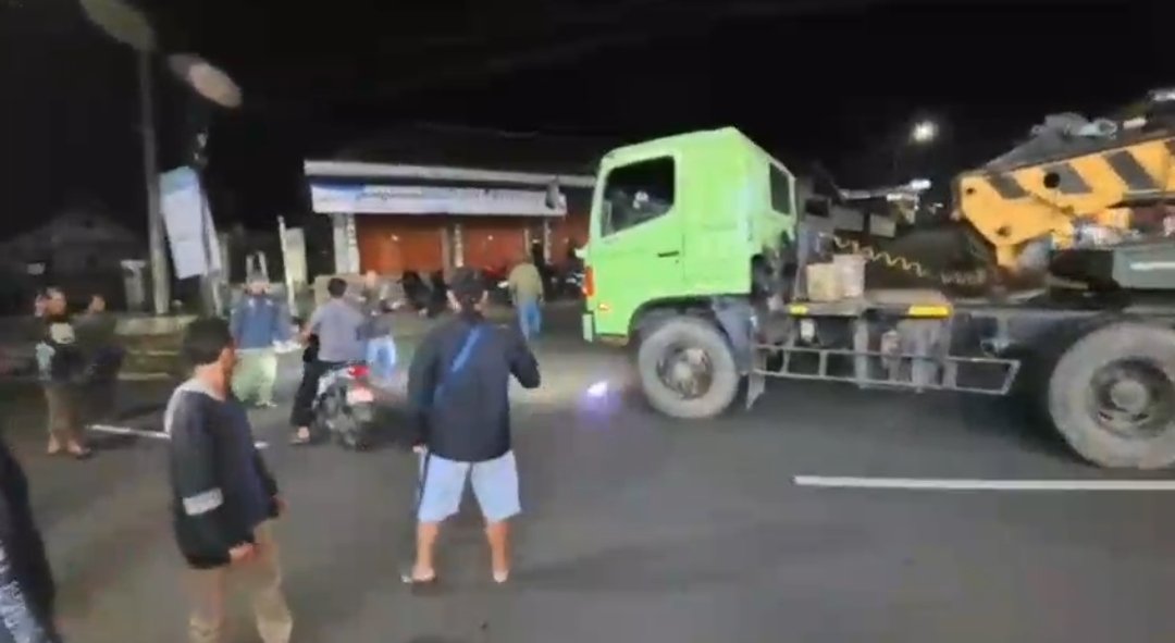 Sejak malam hari, puluhan warga berkumpul di titik-titik kerusakan jalan. Mereka menghadang setiap truk besar yang melintas, memaksa kendaraan untuk berhenti dan memutar balik arah. Sorotan lampu kendaraan, teriakan warga, hingga bunyi klakson yang bersahutan menambah ketegangan di lokasi.